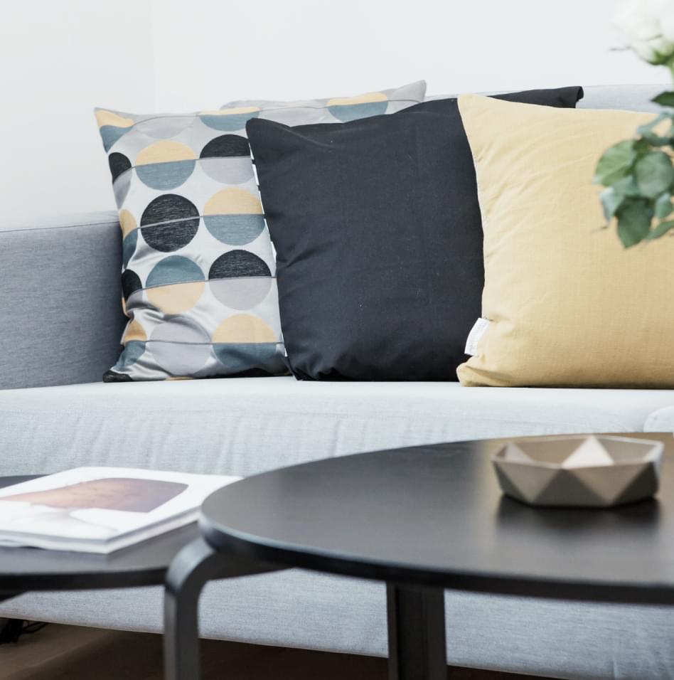 Välj bland ett brett urval av kuddar i olika material och färger som kompletterar din inredning perfekt.